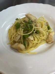 1・白身魚とシシトウのオイルソーススパゲッティ