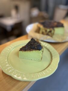 抹茶の香りとクッキーの香ばしさがあるチーズケーキです。