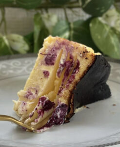 ブルーベリーを混ぜて焼いたチーズケーキ。