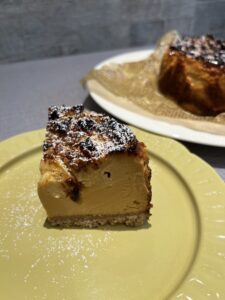 上に黒ゴマを乗せて焼き上げたバスクチーズケーキ。