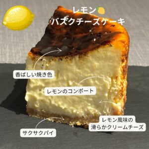 ひんやり、ほろ苦、さっぱり。 この夏だけの特別なごほうび「レモンバスクチーズケーキ」 爽やかなレモンの香りがふわっと広がる、 軽やかでとろける口どけ。   まるで、夏の海辺で深呼吸したような。 レモンの香りがふわりと広がり ひと口で心をゆるめてくれる夏限定の魔法。   焼き色の香ばしさと、 爽やかな酸味のバラン…