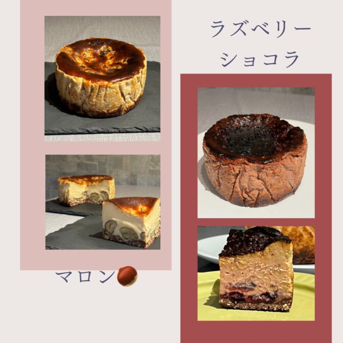 ・バスクチーズケーキ(マロン):クリームチーズ、低温殺菌牛乳、レモン、卵、砂糖、