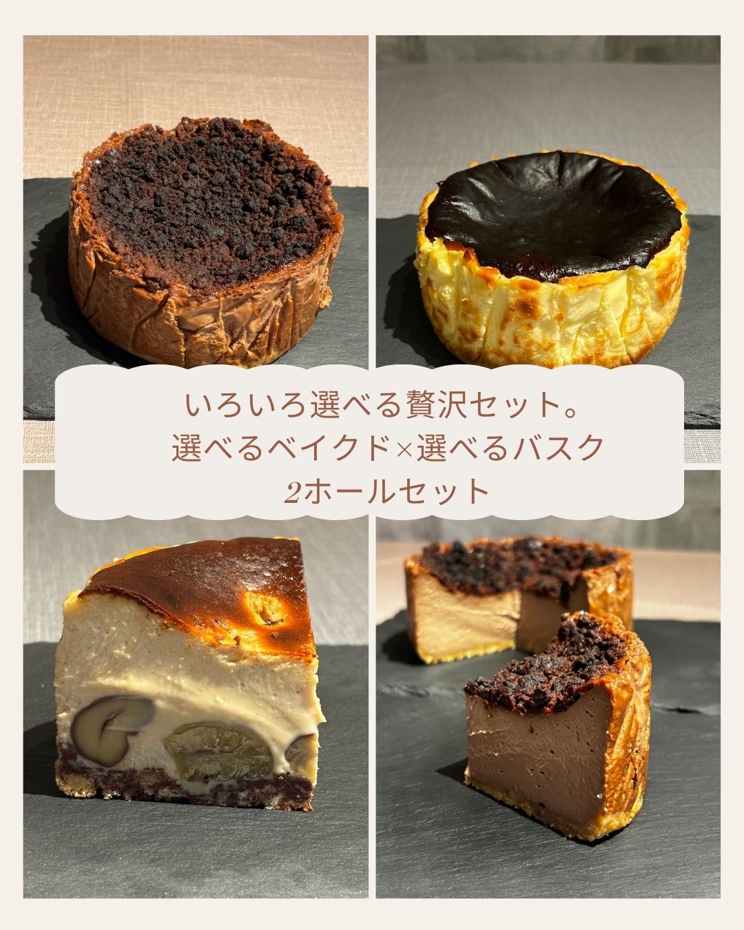 ― ベイクドショコラ × バスク ―選べるチーズケーキセット(12cmホール×2個)